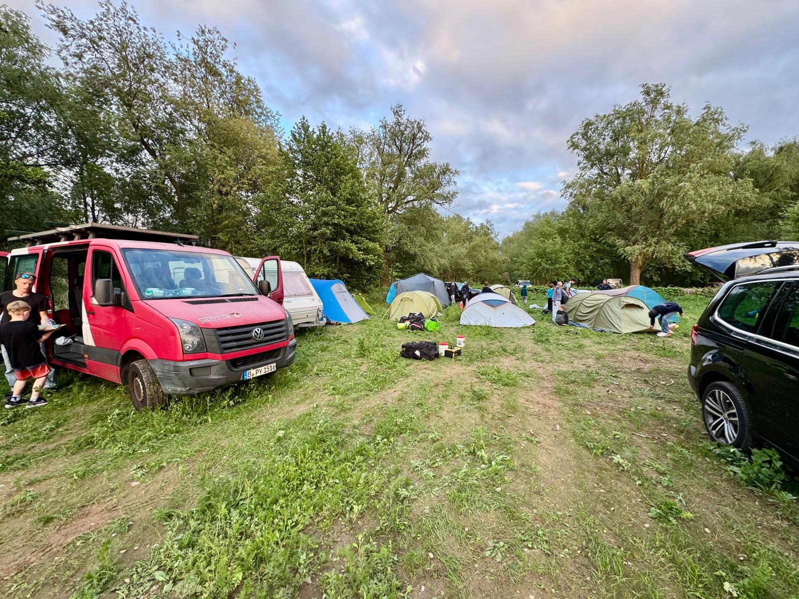 Kurzer Rückblick: bereits am Mittwoch Nachmittag waren wir nach der Schule losgefahren und so früh in Plau angekommen, dass wir vor den anderen Vereinen da waren und wir freie Platzwahl auf dem Areal vom Plauer Wassersport Verein hatten. Nach dem Aufbau der viele Zelte (9 Zelte für 18 Kinder und zwei Trainer und eine Betreuerin) wurde nur noch gegessen und dann ging es schon ab in die Schlafsäcke.